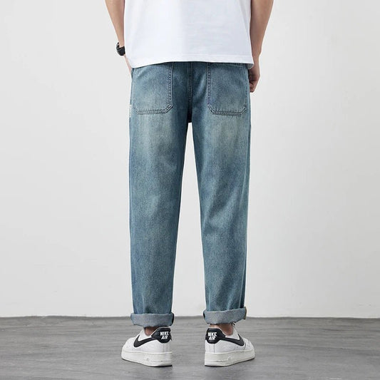 2025 Summer New Men's Denim Pants Old Blue Washed Male Jeans Straight Casual Menwear Loose Wide Leg Trousers Fashion Men Cothing