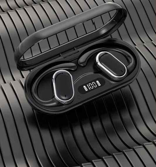 Écouteurs Bluetooth X97 OWS (non intra-auriculaires) avec compartiment transparent pour une autonomie prolongée et une réduction du bruit.